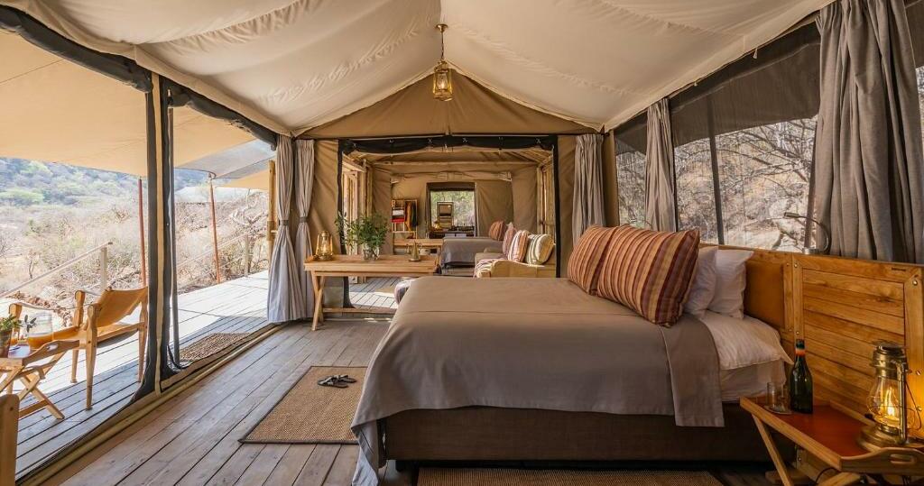 Campens 14 rymliga tält är smakfullt inredda med afrikanska inslag och erbjuder alla moderna bekvämligheter, inklusive privat pool och terrass. Detta är den ultimata platsen att koppla av på mellan spännande game drives. Elephant Bedroom är ett perfekt val för dig som söker en extraordinär vistelse i vildmarken.
