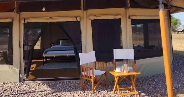 Campen är öppen från juni till mitten av mars varje år och består av sex rymliga safaritält samt ett familjetält, alla med egna badrum och både inomhus- och utomhusduschar. Tälten är utformade för att smälta in i omgivningen och det vilda, med privata verandor som erbjuder spektakulära vyer över parken.