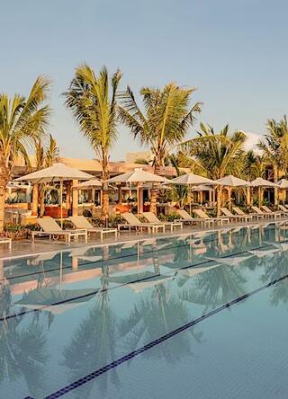 TOA Hotel & Spa är ett modernt och stilrent boutiquehotell som kombinerar avslappnad lyx med förstklassig service, precis vid den kritvita stranden i Pongwe. Här bor du i eleganta rum med utsikt mot havet, trädgården eller poolen, omgiven av svajande palmer och turkosblått vatten.
