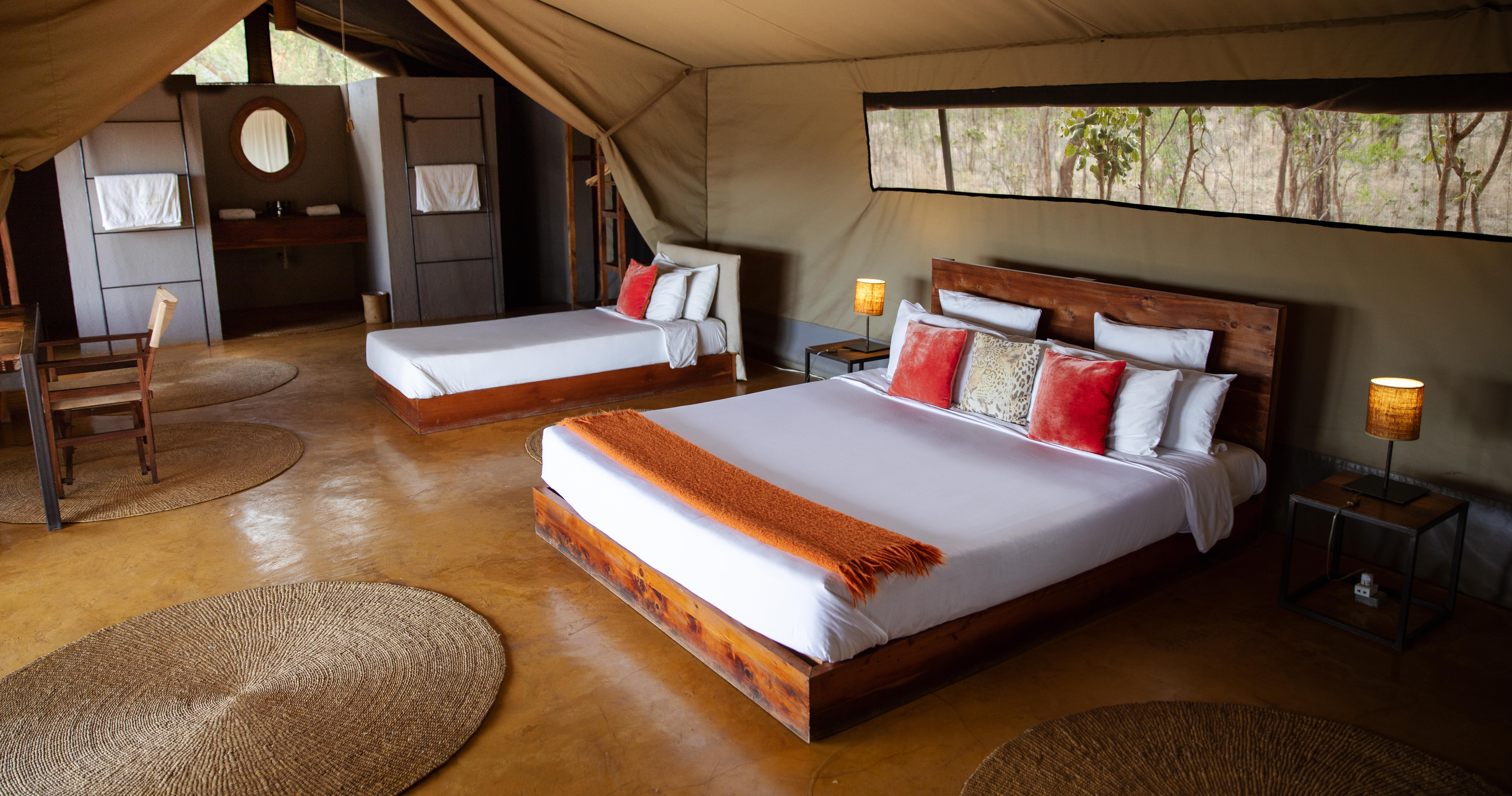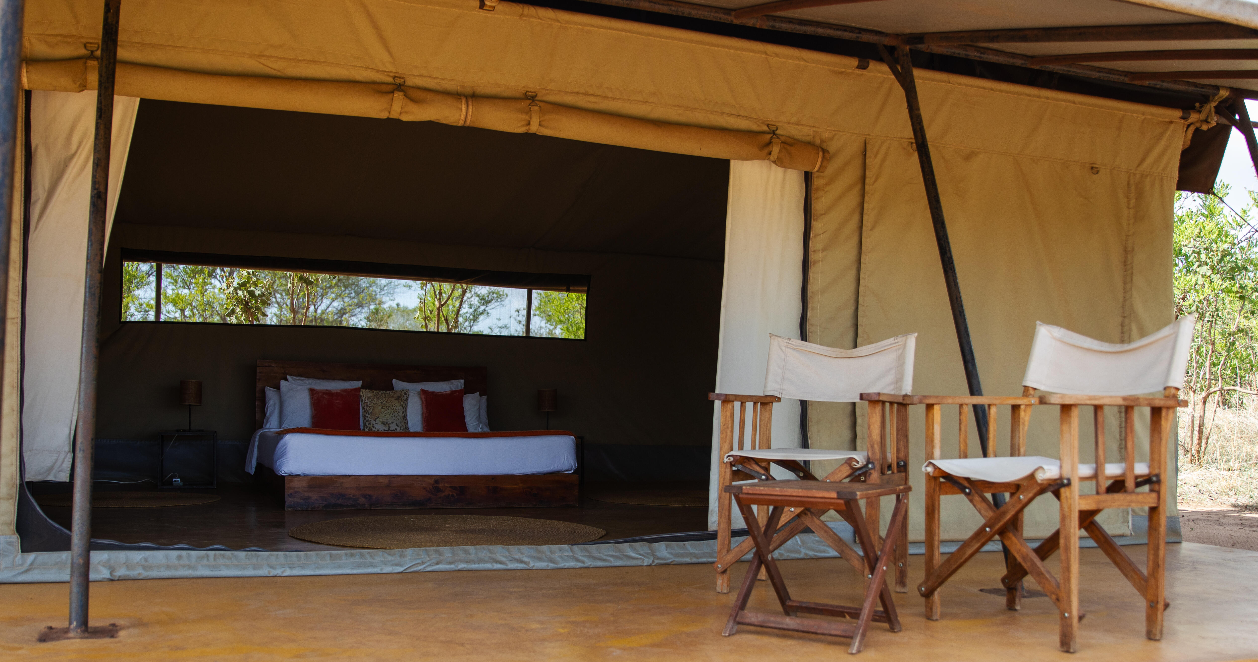 Campen är öppen från juni till mitten av mars varje år och består av sex rymliga safaritält samt ett familjetält, alla med egna badrum och både inomhus- och utomhusduschar. Tälten är utformade för att smälta in i omgivningen och det vilda, med privata verandor som erbjuder spektakulära vyer över parken.