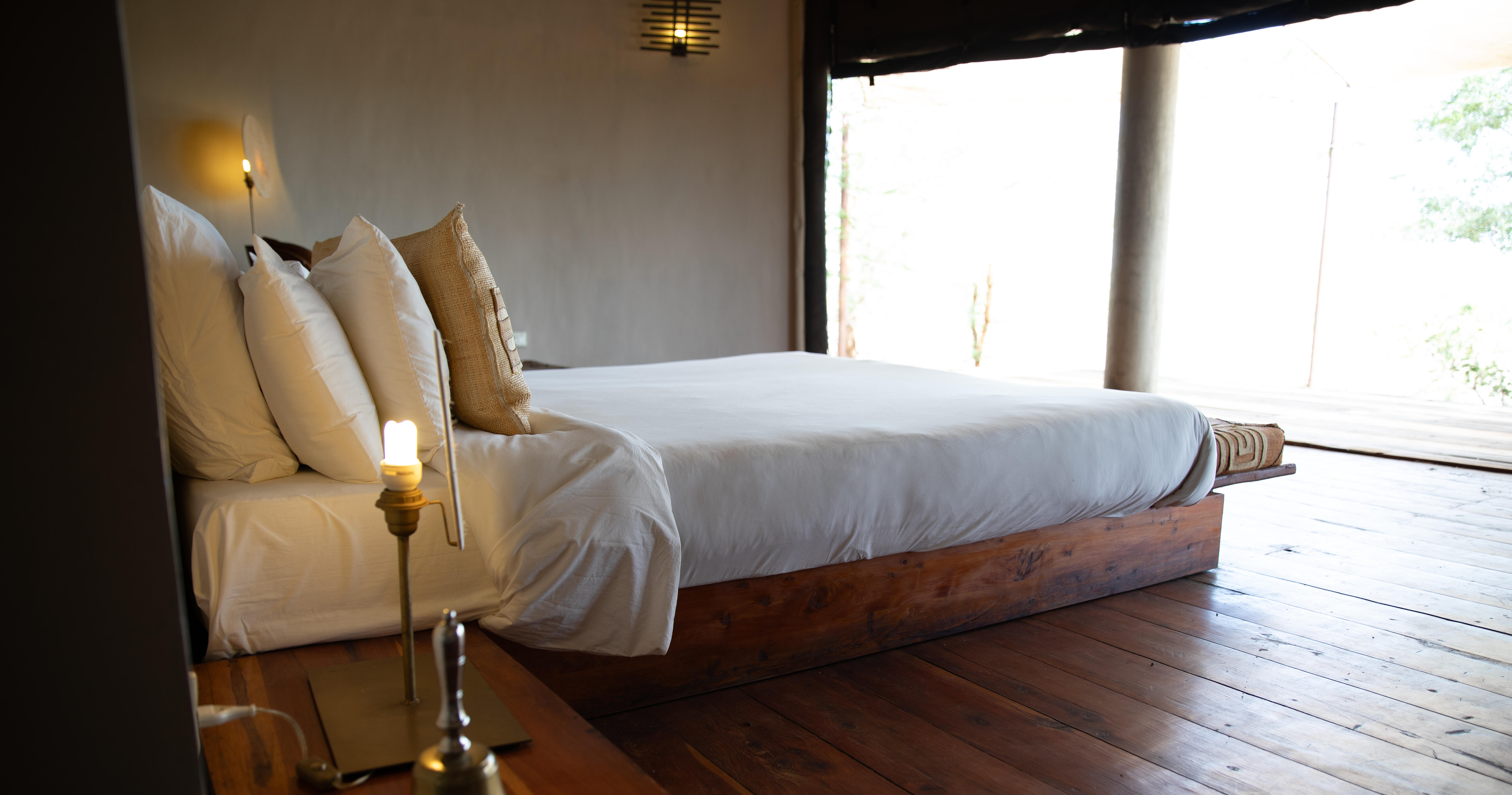 Campen är öppen från juni till mitten av mars varje år och består av sex rymliga safaritält samt ett familjetält, alla med egna badrum och både inomhus- och utomhusduschar. Tälten är utformade för att smälta in i omgivningen och det vilda, med privata verandor som erbjuder spektakulära vyer över parken.