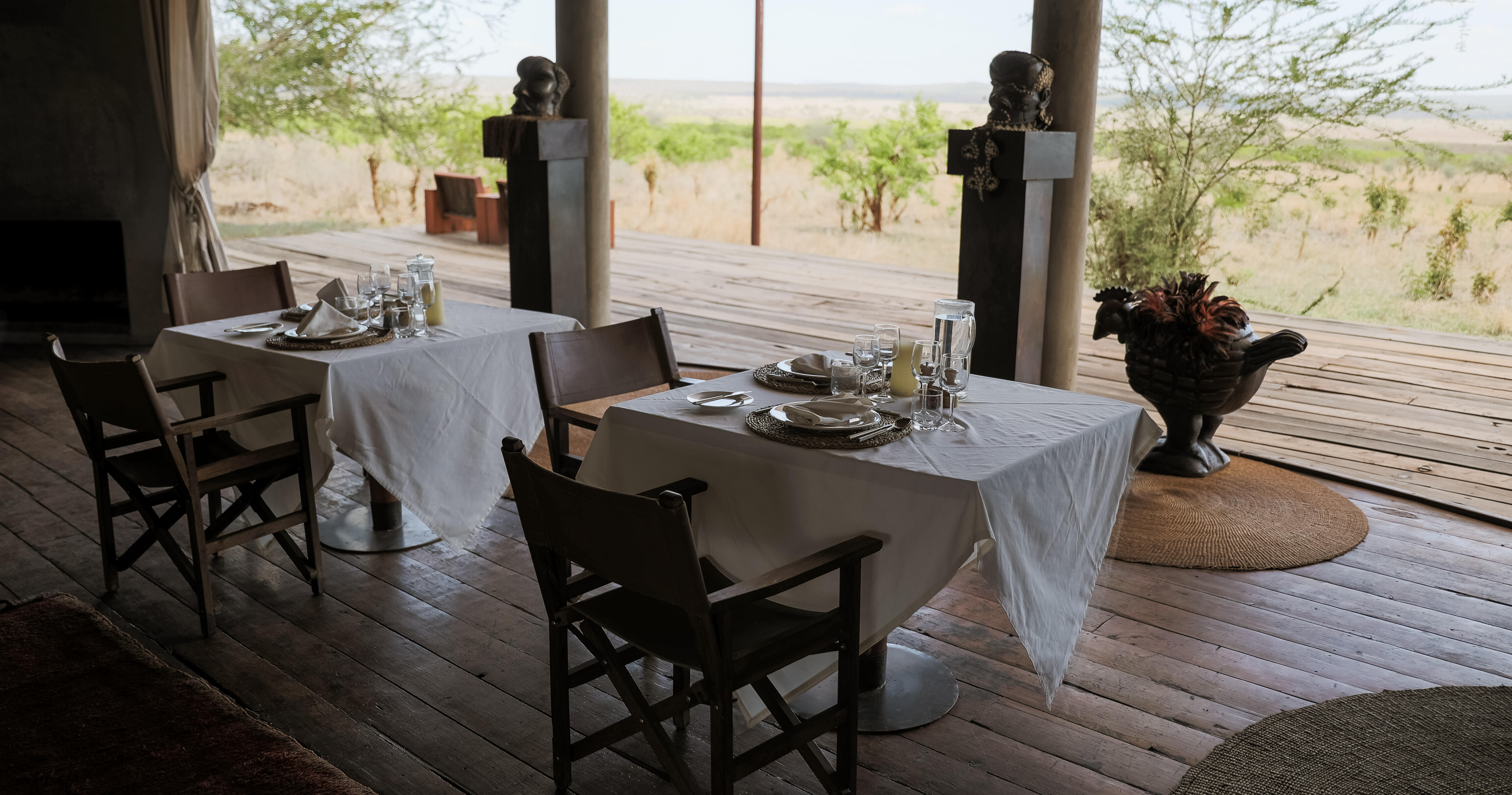 Njut av elegans mitt i naturen. Lodgen är upphöjd på en träplattform under ett halmtak där du kan njuta av måltider med en fantastisk 360-graders utsikt över Lake Burunge och den omgivande vildmarken.