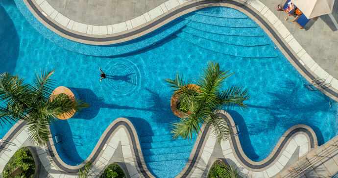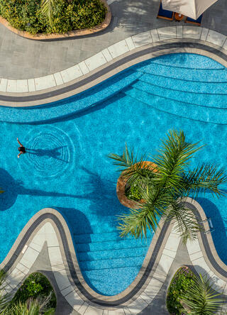 Interiören förmedlar en känsla av stilfullt lugn. Rummen är ljusa och rymliga, många med privata balkonger och utsikt över trädgården. Hotellet erbjuder ett inbjudande poolområde, spa, träningscenter samt flera restauranger och barer, inklusive en takterrass med utsikt över staden.