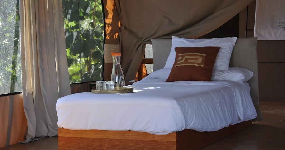 Lodgen erbjuder 16 tältstugor med privat balkong, fullt utrustade badrum och utomhusdusch. Poolen och restaurangen är smakfullt placerade för att smälta ihop med omgivningen.
