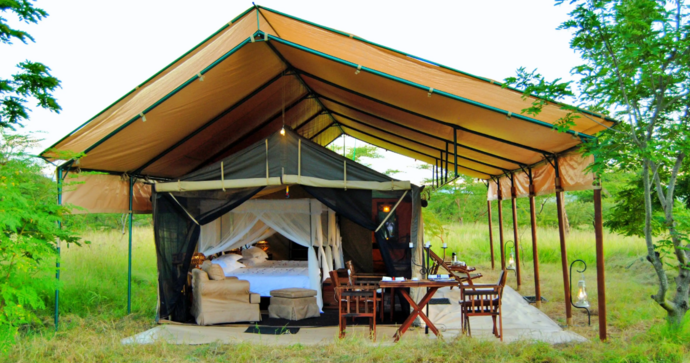 Campen är öppen från juni till mitten av mars varje år och består av sex rymliga safaritält samt ett familjetält, alla med egna badrum och både inomhus- och utomhusduschar. Tälten är utformade för att smälta in i omgivningen och det vilda, med privata verandor som erbjuder spektakulära vyer över parken.